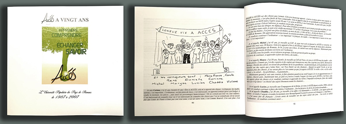FP – A l’origine de la création de l’UP Accès en avril 1987, la SAMIR – mutuelle forte des travailleurs dans les milieux communistes et CGTistes créée en 1955 – a un rôle primordial, comme le raconte la brochure «ACCÉS a vingt ans» (ill. 2). En 1986, elle prend conscience qu’une mutuelle ne doit pas que rembourser des prestations, mais doit aussi permettre à ses adhérents d’être bien et d’accéder à toutes les formes de cultures. Alors le noyau des administrateurs de la SAMIR crée l’UP, obtient rapidement le soutien de la Ville de Romans qui leur met à disposition des locaux ; très vite il fédère d’autres personnes que les militants de la mutuelle, notamment dans le milieu des enseignants. Rapidement à côté de cette origine du monde des organisations communistes qui sont encore fortes dans les années 1980, un autre courant de militants se forme plutôt composé d’enseignants, CFDTistes, catholiques de gauche. Comme dans d’autres UP, il y a toujours ces deux courants.