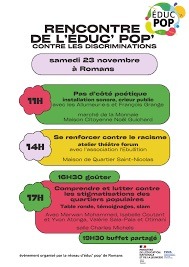 Et il y a des actions communes avec le réseau d’éduc’ pop’, comme la rencontre sur le thème « Contre les discriminations » en novembre 2024, et la table ronde « Comprendre et lutter contre les stigmatisations des quartiers populaires » avec des universitaires et des auteurs (*) accompagnée de témoignages et d’interventions de lycéens (ill. 5). Le prochain thème sera « Les jeunes et l’information ».