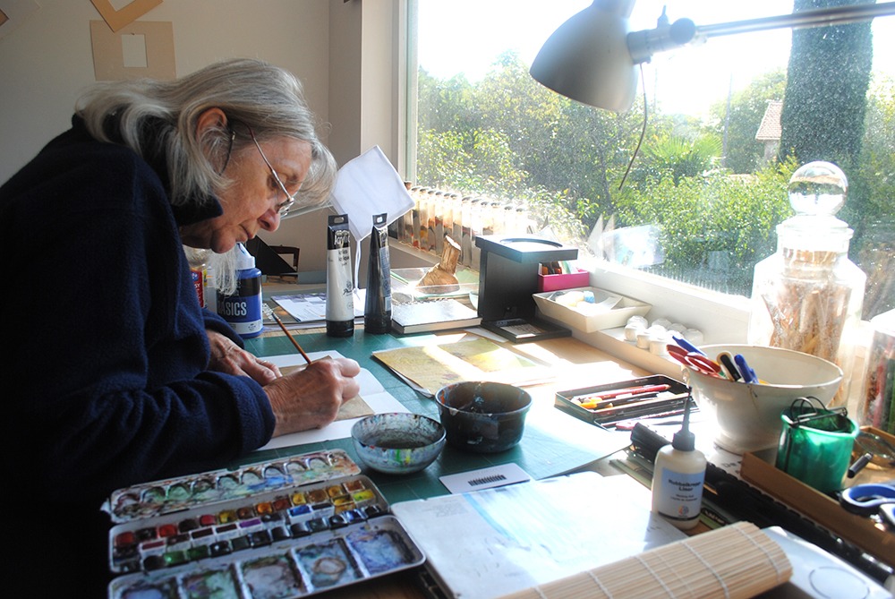 J’ai aussi repris, dans Peindre la phrase qui était écrite dans mon atelier à Valence : « En rêvant, j’ai quitté mes sentiers, et je me suis perdue, je ne saurais plus rentrer, c’est rassurant ». Peindre c’est aussi résister !