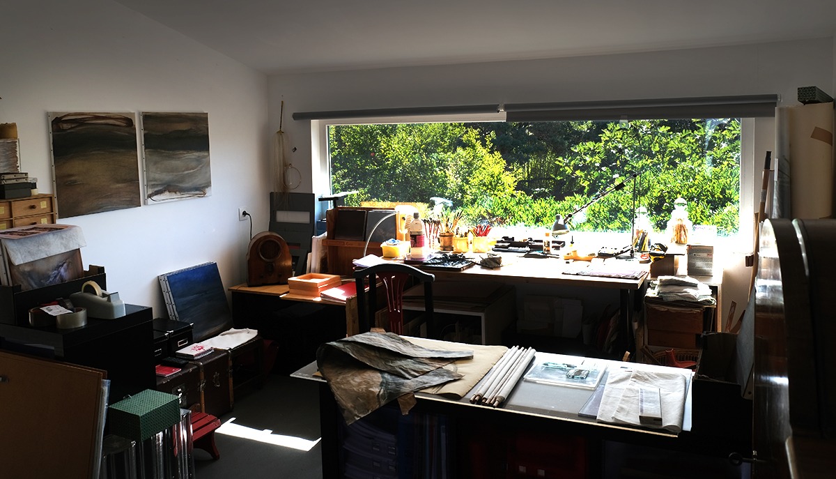 Dans cet entretien réalisé dans son atelier à Saint-Marcel, elle évoque l’influence du lieu de travail sur ses créations, atelier intime ou espace extérieur, rend compte de ses expériences oscillant entre doute et résistance à travers ses références littéraires, ses voyages, ses notes d’atelier qui accompagnent son cheminement.