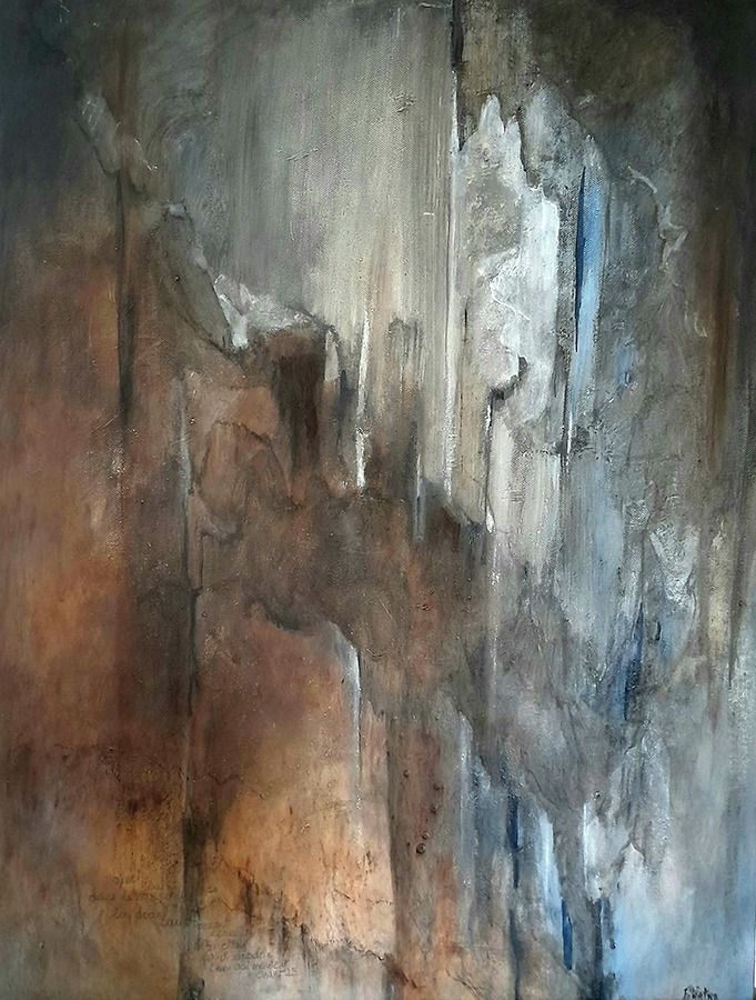 Ce retour à l’atelier « classique » n’a pas pour autant été un arrêt, j’ai continué à ce prix du doute, de l’exil, de l’attente. L’essentiel de mon travail aujourd’hui est le besoin de trouver une dimension nouvelle, plus complète où la réflexion se conjugue avec l’intuition de ce qui est ultime. Je voudrais que ma peinture en prenant une dimension spirituelle redonne la valeur de l’image qui nous regarde en la regardant.