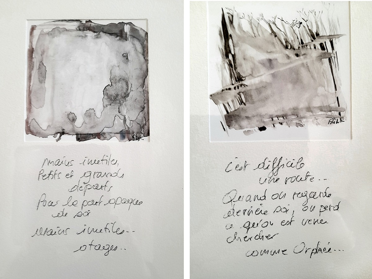 Traversées (ill. 22) est mon travail en cours en 2025 encre de chine noire et brou de noix en utilisant une technique qui demande une rapidité d’exécution. « Il y a un quelque chose qui se dérobe dans une suspension du geste qui se soustrait au contrôle. Accepter, après séchage, la disparition de la brillance de l’eau et la dictature de l’encre au profit des conditions « impérialistes » d’un support quasi vivant. Dans cette série, la pointe du pinceau est au bout de mon bras, quelque chose se condense : les lieux sont désertés mais en tournant les feuilles, qui deviennent des pages, les images se restituent au dos : l’envers vaut l’endroit ! Traversées est en adéquation avec toutes mes œuvres. Cette série n’aura plus qu’un seul geste à faire : celui de l’intraçable » (*).