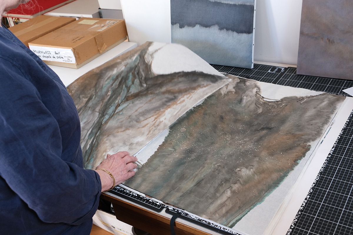 Le temps passé pour qu’une œuvre soit « finie » n’est pas un critère, et à la notion de « fini », je préfère « aboutie ». Ma peinture doit correspondre à l’idée sur laquelle je travaille. En ce moment, avec les Traversées, le support à partir de fragments de textes de La Divine Comédie est une exploration vertigineuse… c’est sans fin !