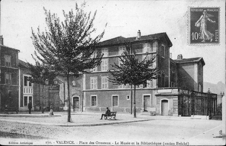 C’est une délibération du conseil municipal du 24 mars 1833 qui décide d’installer la bibliothèque et le musée, dans les locaux de l’ancien petit séminaire où se terminent déjà les travaux du collège qui va y ouvrir ; ce qui est aujourd’hui le quadrilatère occupé par la Comédie de Valence au sud et au nord par divers services de la ville de Valence en cours de déménagement.