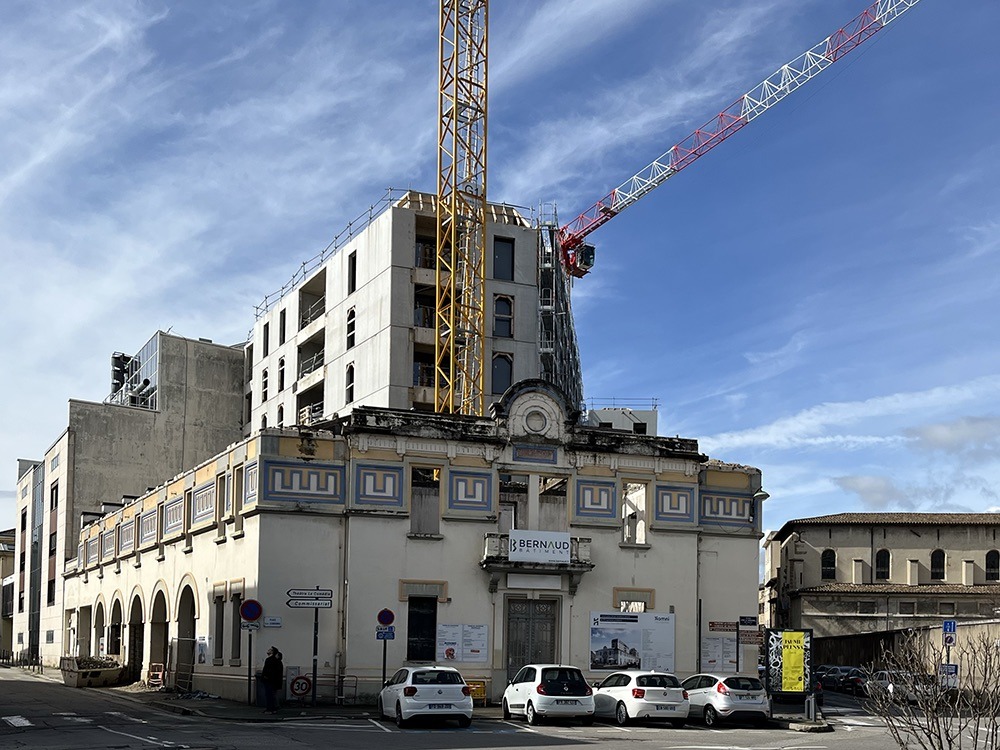 Bien que soit élaboré en 2017 un « Schéma directeur de préservation et de valorisation du Patrimoine historique de la ville » (*) par D. Repellin, architecte en chef des monuments historiques, peu de restaurations de patrimoine appartenant à la Commune ont été entreprises en dehors de l’Hôtel de ville (ill. 3). D’autres édifices ont été restaurés par l’État (cathédrale, préfecture, gare) ou des privés (Maison Mauresque, ill. 4) et la rénovation de l’habitat et des façades malgré les aides de la Ville ne semble pas avoir porté ses fruits. Seule reconversion notable, la caserne Latour-Maubourg transformée en médiathèque par l’architecte Rudy Ricciotti en 2021 qui a réalisé un simple volume vitré devant l’ancienne façade (ill. 5).