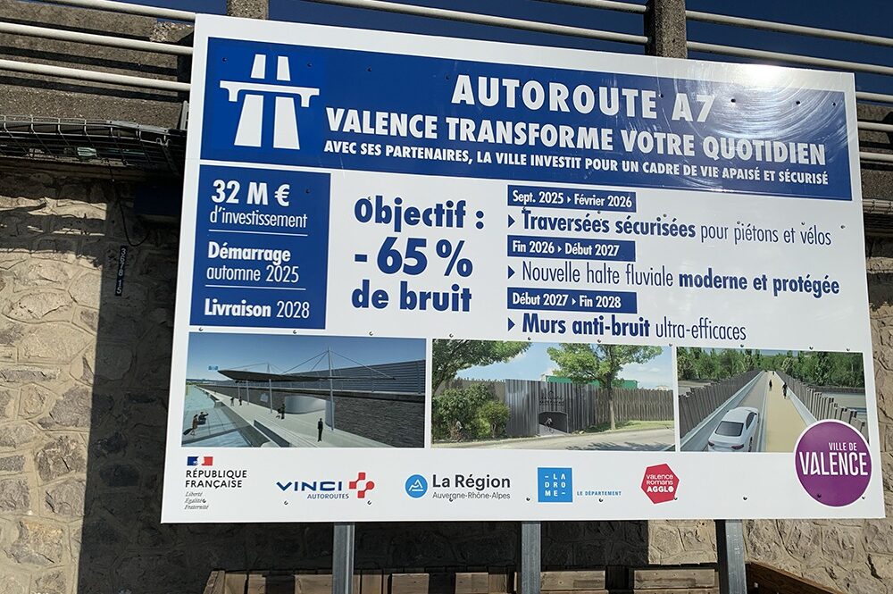 - Fleuve Rhône : ce patrimoine fluvial et naturel est nié depuis la construction de l’A7. Seul le site de l’Épervière joue un rôle d’interface entre le Rhône et Valence, mais sans approche patrimoniale et sans possibilité de réappropriation du fleuve par les habitants et les cyclistes alors que déjà une simple liaison le long du Rhône avec le parc Girodet à Bourg-Lès-Valence pourrait être réalisée, mais la ViaRhôna ne passerait pas par la future « Cité gourmande » dans la basse ville… Bien que le PLU prône la « requalification des berges et l’émergence d’un nouveau rapport des valentinois au Rhône », des murs anti-bruit de 3 et 5 mètres de haut (ill. 17) vont être construits le long de l’A7 (32 millions d’€) accentuant encore plus la coupure avec le fleuve.