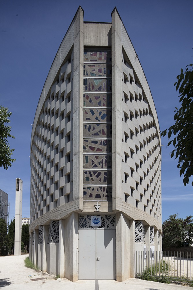 Dès les années 1950, se développent en périphérie des villes, de nouveaux quartiers qui nécessitent alors la construction de lieux de culte. C’est dans ce contexte des Trente Glorieuses que trois églises, à Clermont-Ferrand, Nîmes et Valence offrent des espaces intérieurs dont on ne peut être que frappé par la similitude. Si leur puissante architecture inscrite dans le mouvement moderne s’impose, les parois alliant béton, lumière pointilliste et colorée sont leur signature.